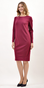 Юбка прямого силуэта из костюмной ткани. По переду защипы и вставка из кожи на поясе. Застежка по спинке на потайную молнию и пуговицу.