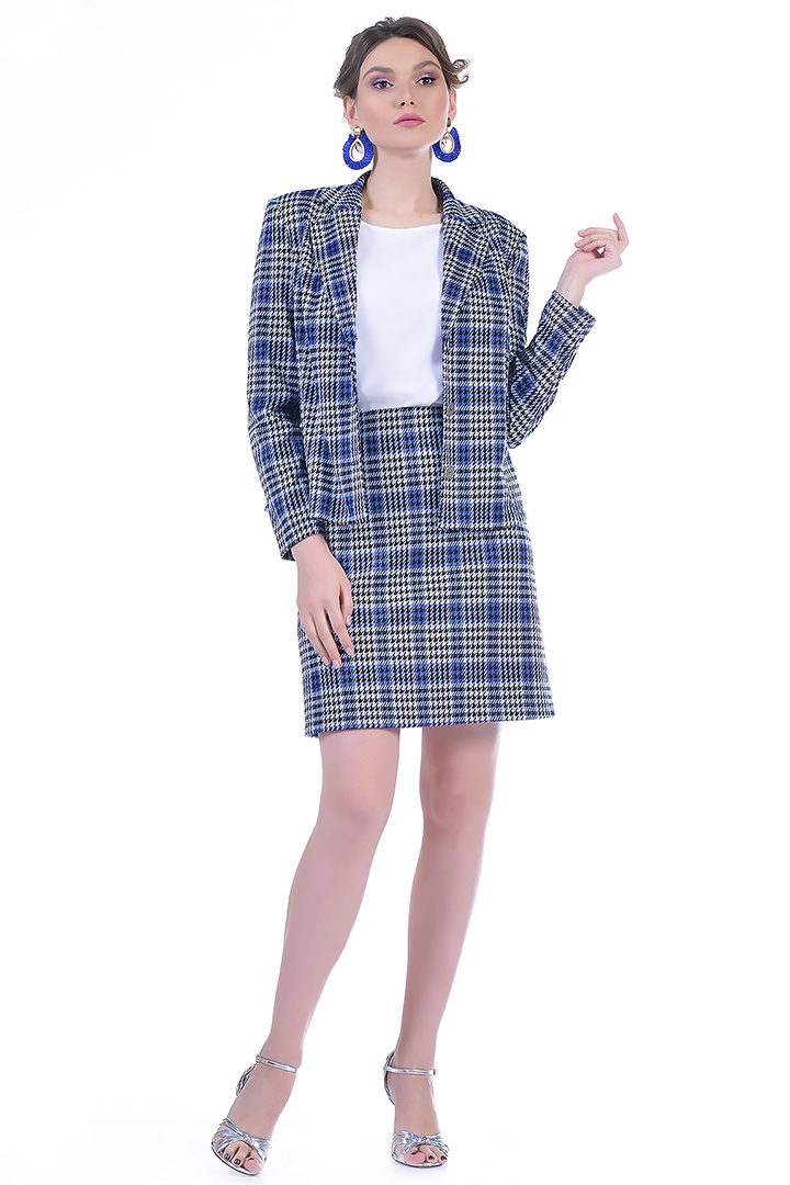 Жакет полуприлегающего силуэта из плотного трикотажа в клетку. Воротник пиджачного типа, рукав двухш
