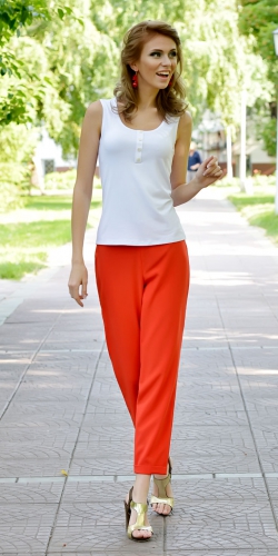 Топ прилегающего силуэта из трикотажа. Топ на широких бретелях, по переду декоративная планка с пуго